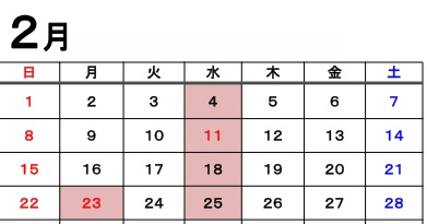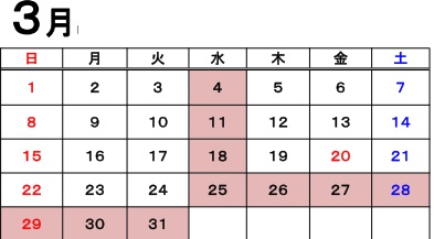 赤枠の日はお休みとなります