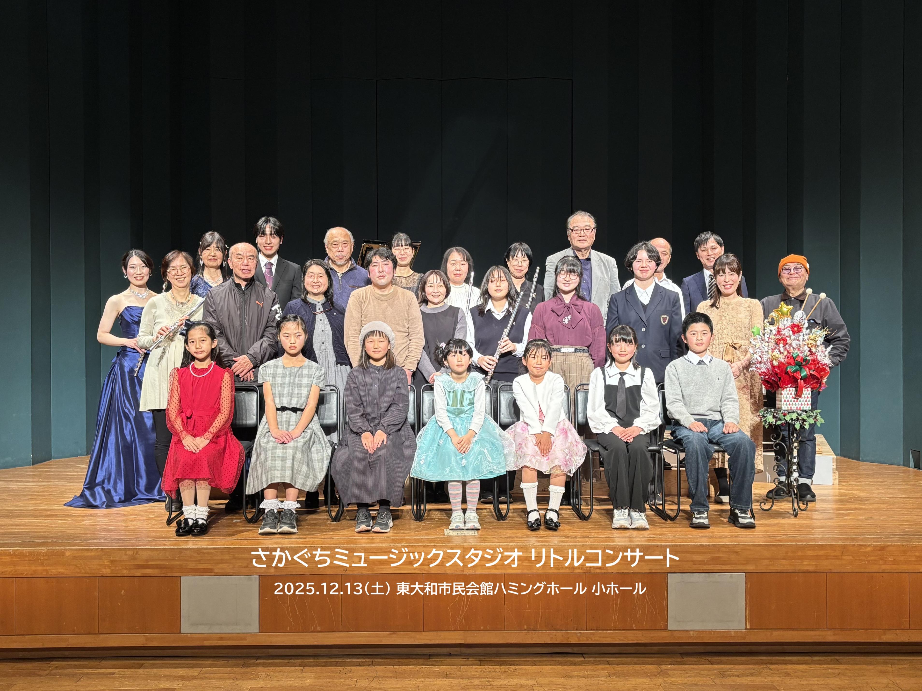 2025年12月13日に開催した発表会が無事終了いたしました! 直後から動画編集に取り掛かりましたが、やっと終わり、 youtubeへのアップが終了し、ホームページへの掲載が来たのが今日。 大変遅くなってしまってごめんなさい! 動画は「発表会動画」ページよりご覧ください。 ブログでは舞台裏についてお話いたします。 ![]() これは朝8時の教室前風景、ただ今タクシー待ちの時間。 使う楽器や機材を、奈緒講師と私(絹子講師)で積み込みます。 タクシーに乗り切らない荷物は前日にスタッフ宅の車に乗せてもらっています。 ![]() 9時前にホール到着、裏の搬入口より機材や荷物を運びます。 まずステージの楽器位置を決定。 次に、ホールのスタッフさんがそれに合わせて照明を作ってくださいます。 ステージが出来上がるまでが約1時間半。 撮影するビデオカメラの位置決めなどをします。 ![]() ステージが出来上がったら次に、 合奏形態で演奏する出演者のリハーサルが始まります。 これは、練習のためではなく、 会場に流すそれぞれの楽器のバランス調整のためです。 ホールスタッフさんがこちらの希望を聞きつつ、良いバランスに整えます。 ![]() 客席で講師が聴き、良い感じになるまで要望を出します。 ![]() リハーサルが終わるともうすでに開場の時間です。 それまでに、受付や司会スタッフが到着、隙間時間に打ち合わせを済ませ、 本番を迎えます。 昼食は隙間時間に各自勝手に食べる感じです。 今日だけは早食い競争です(笑) ![]() 写真は楽屋風景、司会スタッフと奈緒講師が打ち合わせしているところ。 手前に見えるのはフルートのピアノ伴奏をしてくださる若林先生。 本番中の舞台ソデはこんな感じ ![]() 陰マイクでアナウンスする司会スタッフと、 舞台上の細かい事をしてくれているステージマネージャー。 タブレットでタイムテーブルを見ながら分刻み秒刻みで動いています。 こちら、舞台ソデで演奏中の生徒さんを見守る絹子講師 ![]() あと、写真には撮れなかったのですが、 受付スタッフが2名、快く手伝ってくれました。 司会のお姉さんと受付のおひとりは昔は出演していた元生徒さんです。 お手伝いしてくれた大勢の仲間のおかげを持ちまして、 無事終了する事が出来ました。 出演した生徒さん、 それを応援してくれた保護者の皆様、 発表会、楽しんでいただけたでしょうか。 思い出に残る発表会になっていたら嬉しいです! ![]() |